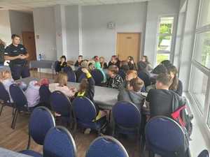 Zwiedzali sępoleńską komendę w ramach bonu wygranego podczas policyjnego festynu z okazji 100 lat kobiet w Policji