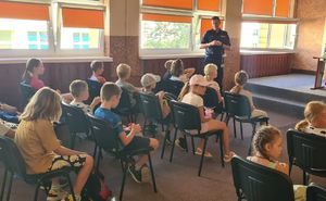 Policjant opowiadał o bezpieczeństwie uczestnikom półkolonii