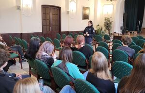 Policjantka rozmawiała z uczniami o bezpieczeństwie w trakcie zimowego wypoczynku